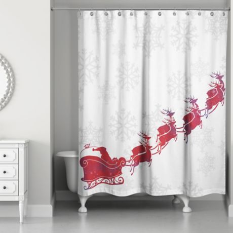Santa S Sleigh Shower Curtain In Red White Bed Bath Amp Beyond