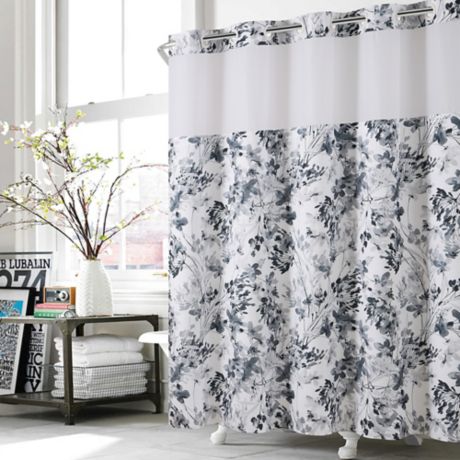 Hookless 174 Watercolor Floral Shower Curtain In Black White
