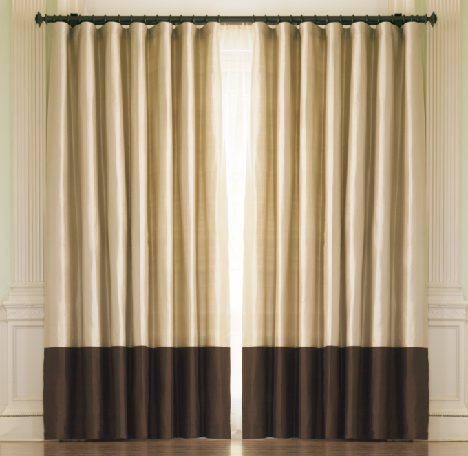 Thai Silk Coffee Banded Rod Pocket Drapes